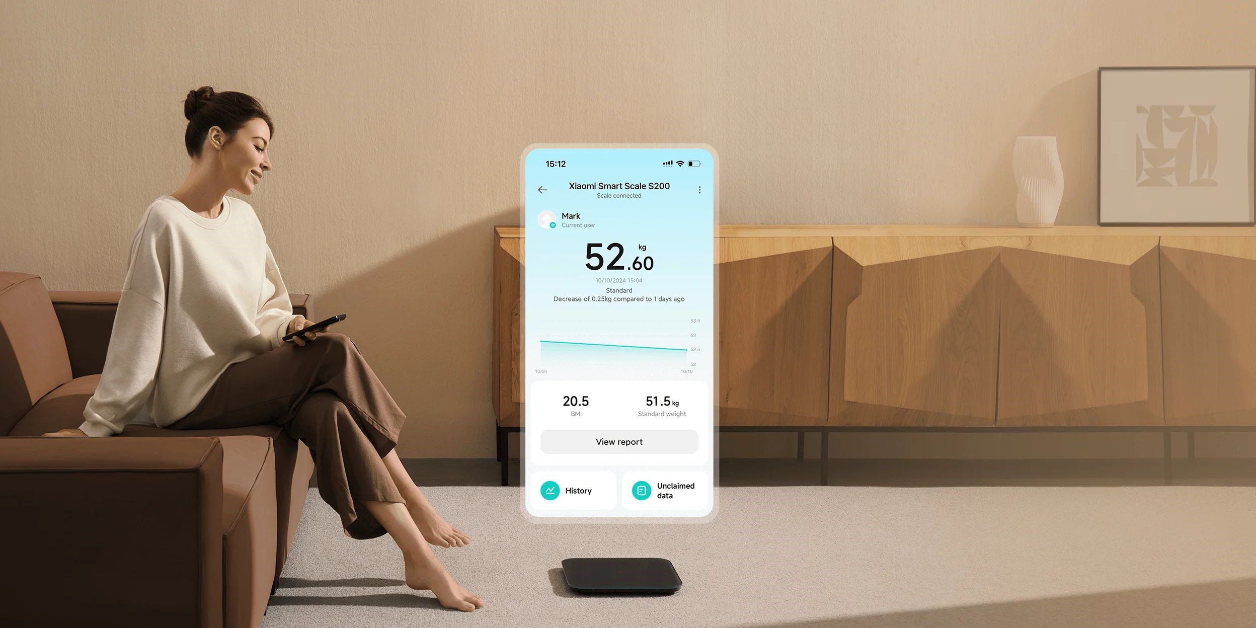 نسخهی جدید Xiaomi Smart Scale S200 بهطور کامل با اپلیکیشن Mi Home سازگار است و میتواند اطلاعات تا ۳۶ کاربر مختلف را ذخیره کند. این یعنی هر فرد خانواده، دادههای شخصی خود را در گوشیاش دنبال خواهد کرد. اپلیکیشن با تحلیل اندازهگیریهای روزانه، گزارشهای وزنی اختصاصی تولید کرده و روند تغییر وزن شما را در بازههای زمانی مختلف – از هفته تا سال – بهصورت گرافیکی نمایش میدهد. این سطح از یکپارچگی نرمافزاری باعث میشود سلامت و تناسباندام به تجربهای هوشمند و دقیق تبدیل شود.