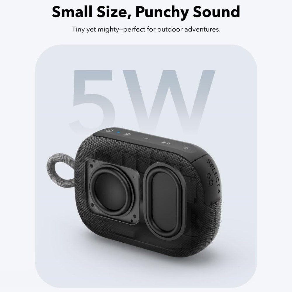 در قلب Select 4 Go، درایوری قدرتمند با توان خروجی ۵ وات قرار دارد که صدایی فراتر از انتظار از چنین بدنهی کوچکی ارائه میدهد. فناوری Soundcore Signature Audio با تنظیم دقیق اکولایزرها، تعادلی طبیعی میان فرکانسهای پایین و بالا برقرار میکند تا صدایی غنی، پویا و شفاف در هر سبک موسیقی به گوش برسد. بیس کوبنده ولی کنترلشده، صدای میانی گرم و تریبل زندهی آن تجربهای شنیداری دقیق و منسجم ایجاد میکند. چه در محیطهای باز باشید و چه در فضای بسته، این اسپیکر بهخوبی فضا را پر میکند و صدایی متوازن و بدون اعوجاج ارائه میدهد. از پادکستهای آرام گرفته تا موسیقیهای پرانرژی، Select 4 Go صدایی طبیعی و وفادار به منبع اصلی تولید میکند.