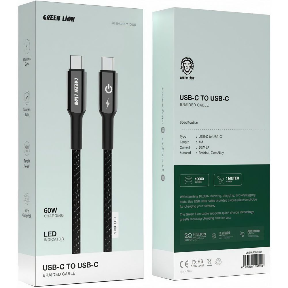 کابل شارژ Type-C به Type-C گرین لاین مدل Green Lion Braided Cable GNBRUC2UCBK طول 1 متر در بروزکالا