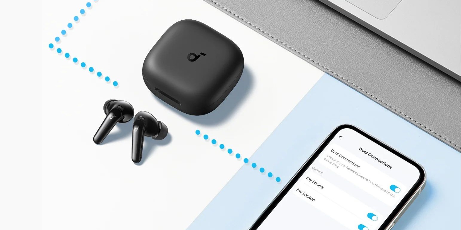 از نظر اتصال، Soundcore R60i NC کاملاً بهروز است. استفاده از Bluetooth 6.1 باعث پایداری بالا و اتصال سریع میشود و پشتیبانی از Google Fast Pair تجربه راهاندازی را برای کاربران اندروید بسیار ساده میکند. اما برگ برنده واقعی، قابلیت Dual Connection است؛ ایرفون میتواند همزمان به دو دستگاه متصل باشد و بدون قطع و وصلهای آزاردهنده، بین لپتاپ و گوشی جابهجا شود. این ویژگی در استفاده روزمره، بهویژه برای کاربرانی که همزمان موسیقی گوش میدهند و تماس کاری دارند، ارزش واقعی خودش را نشان میدهد.