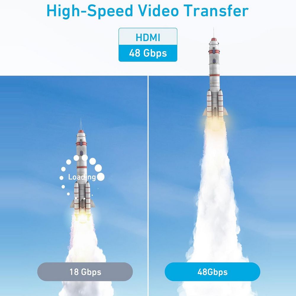 کابل HDMI فوقسریع انکر با پشتیبانی از استاندارد HDMI 2.1 برای کاربرانی طراحی شده که به کیفیت تصویر نسل جدید و انتقال داده بدون تأخیر نیاز دارند؛ پشتیبانی از خروجی 8K با نرخ 60 هرتز و 4K تا 120 هرتز در کنار پهنای باند قدرتمند 48Gbps، انتقال تصویر فوقشفاف، روان و بدون لگ را ممکن میکند و پشتیبانی از Dynamic HDR باعث میشود روشنایی، کنتراست و جزئیات تصویر در هر فریم بهصورت هوشمند بهینه شود. این کابل برای گیمینگ نسل جدید، استریم محتوای حجیم و اتصال دستگاههایی مانند کنسولهای PS5 و Xbox Series X/S، تلویزیونهای 4K و 8K، پروژکتورها و مانیتورها کاملاً ایدهآل است. ساختار مقاوم با تحمل حدود ۱۰۰۰ بار خم شدن، دوام مناسب برای استفاده طولانی را تضمین میکند و طول ۱.۸ متری نیز آزادی عمل خوبی در چیدمان تجهیزات صوتی و تصویری فراهم میآورد.